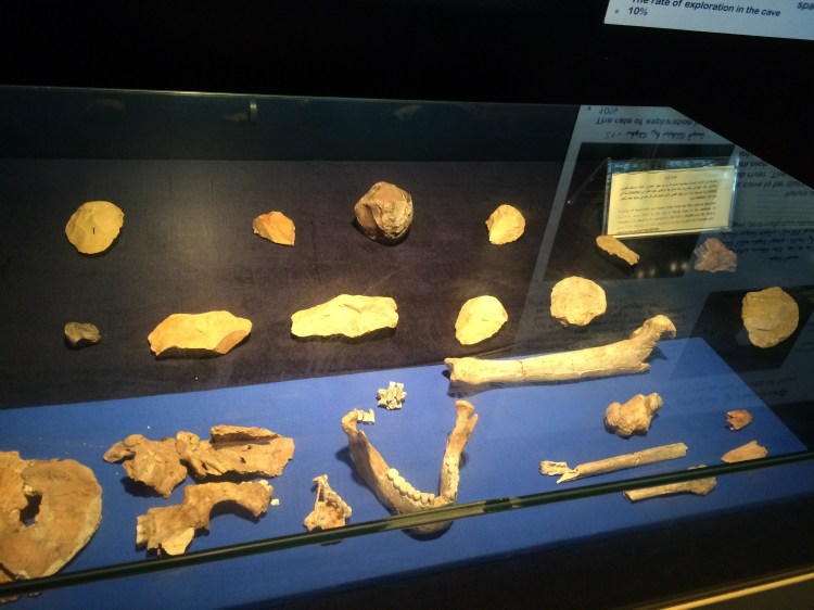 Hominin bones are essential for understanding our physical evolution. The earliest preserved bones are now fossilized- turned to stone- but in the best cases the structure of the original bone is retained. More modern remains can help us better understand human variability, disease, pathologies, and demographies. Neanderthal bones and stone tools from Shanidar Cave. At Baghdad Museum.