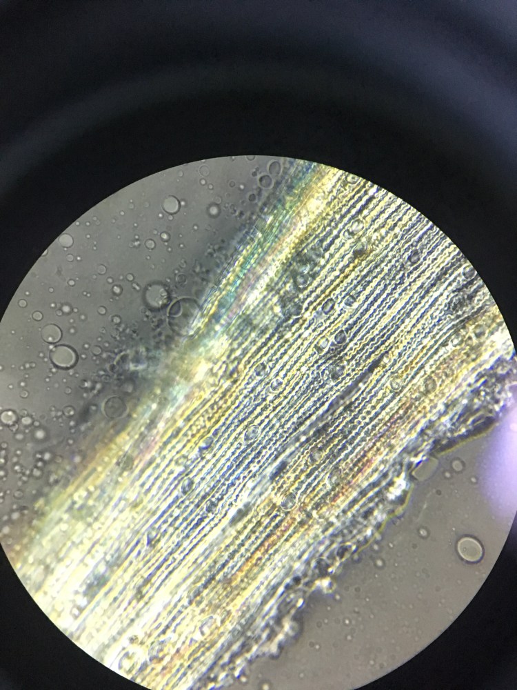 A microscopic view of plant phytoliths still articulated from a micromorphological sample to see the smaller layers of an archaeological context.