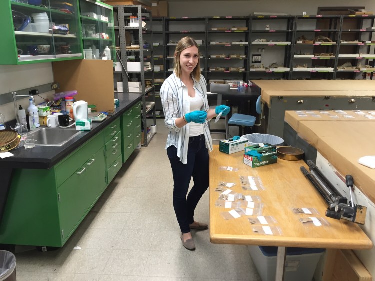Dalyn Grindle samples fish bones for aDNA analysis to understand genetic relatedness between ancient fish from archaeological contexts and modern fish. Photo from Dalyn Grindle.